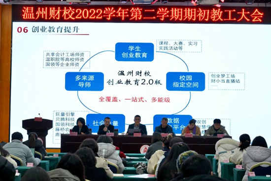 瑞兔呈祥,萬象更新。新學(xué)期,新起點(diǎn),新征程,為確保學(xué)校各項(xiàng)工作有序開展,2月4日上午,溫州財(cái)稅會(huì)計(jì)學(xué)校在教學(xué)樓501報(bào)告廳召開了2022學(xué)年第二學(xué)期全體教職工大會(huì),學(xué)校班子成員及全體教職工參加。