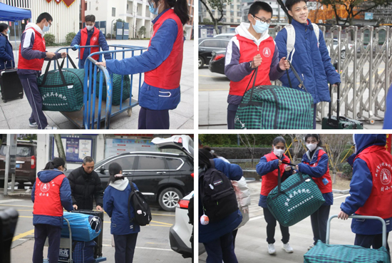 2月5日,財(cái)校學(xué)生有序返校。在學(xué)校政教處、團(tuán)委的有序組織下,師生志愿者積極參與到返校的秩序維護(hù)、行李搬運(yùn)等工作中。校園里閃動(dòng)的紅色身影,為校園添了一抹亮色。