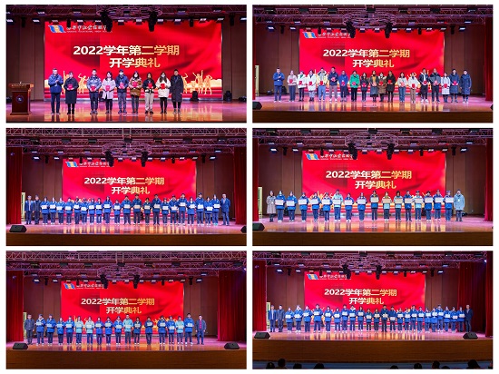學校領導、企業代表宣布2022學年第一學期三好學生、優秀學生干部、單項獎名單,示范班級、教學質量獎班級名單,中國經編園獎學金名單。“杭海龍渡湖國際時尚產業學院” 項目定向培養獎學金名單,以及2022學年海寧市級及以上各級各類業務比賽中獲獎教師名單。學校領導、企業代表為獲獎學生、教師頒獎并合影留念。