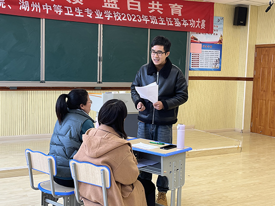 教師,是播撒知識的種子,是傳遞文明火炬的使者,而班主任更是學生健康成長的引路人。為貫徹習近平總書記關于教育的重要論述及全國教育大會精神,踐行“美好教育”理念,加強班主任隊伍建設,提高班主任專業素質與專業能力。在“藍白共育”黨建聯建的推動下,湖州中等衛生專業學校與長興技師學院共同舉辦了2023年班主任能力大賽,湖州中等衛生專業學校共有14位班主任報名參賽。