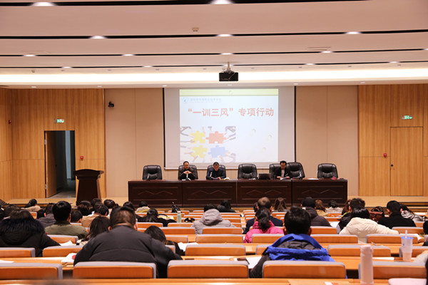 為提升學校治理水平,建設(shè)優(yōu)良校風學風,進一步加強校園安全管理,2月21日下午,玉環(huán)市中等職業(yè)技術(shù)學校在學校A系部樓階梯教室召開“一訓三風”專項行動會議,學校副校長吳永勝、熊邦忠,德育處主任金華,保衛(wèi)科主任董志華,全體班主任、部分學校安保人員及食堂負責人參加。