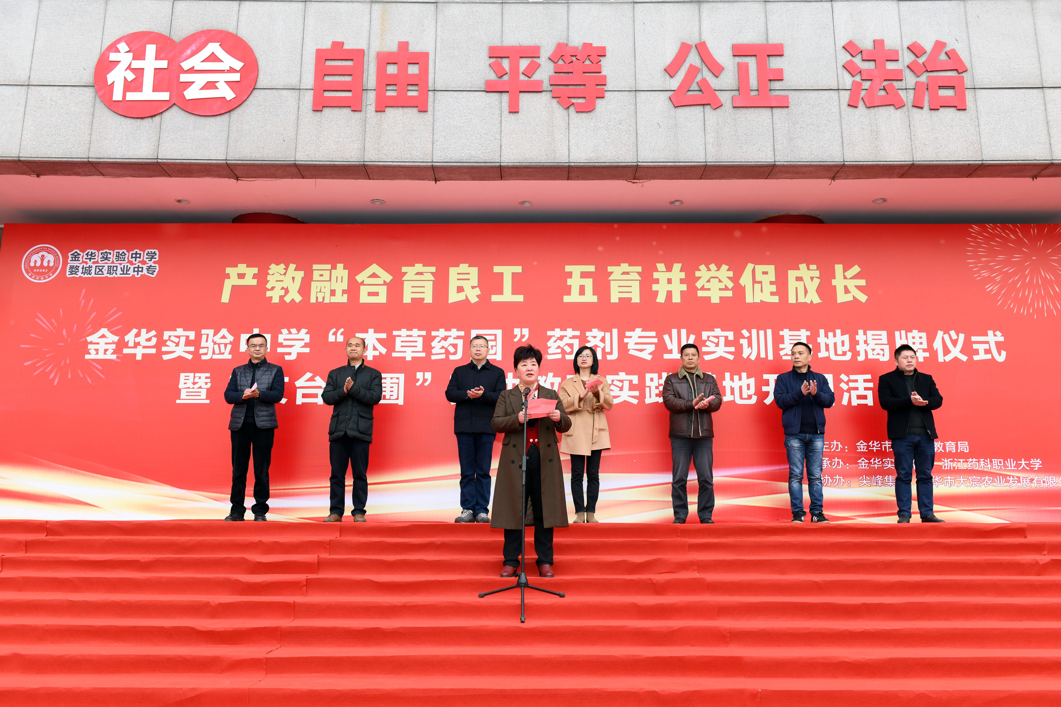 隨后,李剛宣布金華實驗中學“本草藥園”藥劑專業實訓基地揭牌儀式暨“文臺菜圃”勞動教育實踐基地開園。