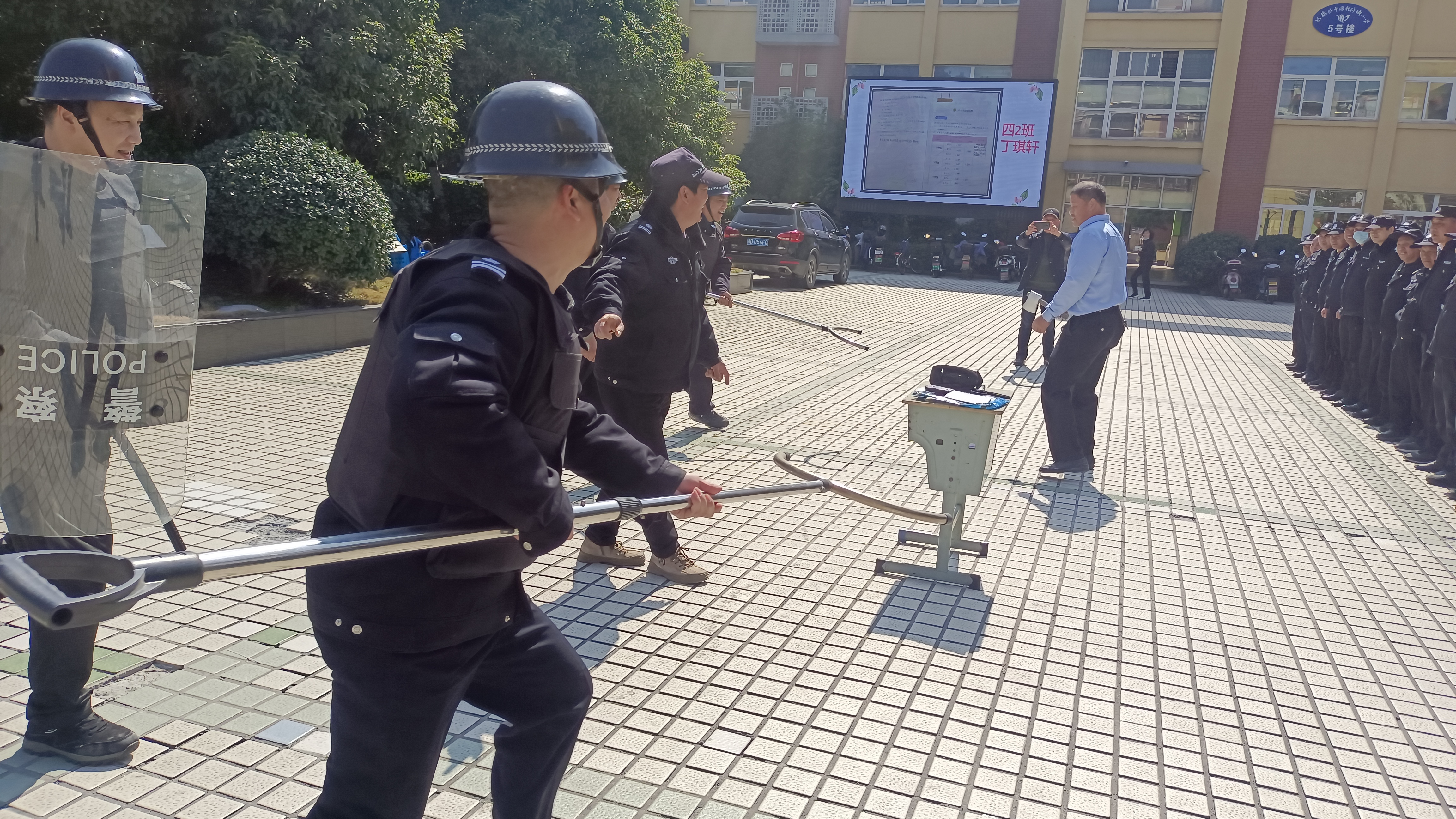 培訓中,柯橋區教體局安管科科長郭建強對學員提出三點要求:希望學校保安在國家大事喜事多、疫情放開人員往來交流多的大環境下,提高認識,確保平安;規范日常執勤、巡邏、守門等工作;與同事、學生、教師、領導相處要融洽。安管科王佳羽對全區上一年度校園安保工作進行了回顧總結和2023年度工作部署,并提了四點要求,希望學校保安能認清形勢,從思想上認識到安保工作的重大意義;練好技能,強化校園安保工作;強化制度,提高安保標準;加強溝通,做好服務工作。柯橋區治安大隊潘華衛做了題為“保安勤務實務及處置突發事件能力的培養”的講座,下午進行了保安技能操練。