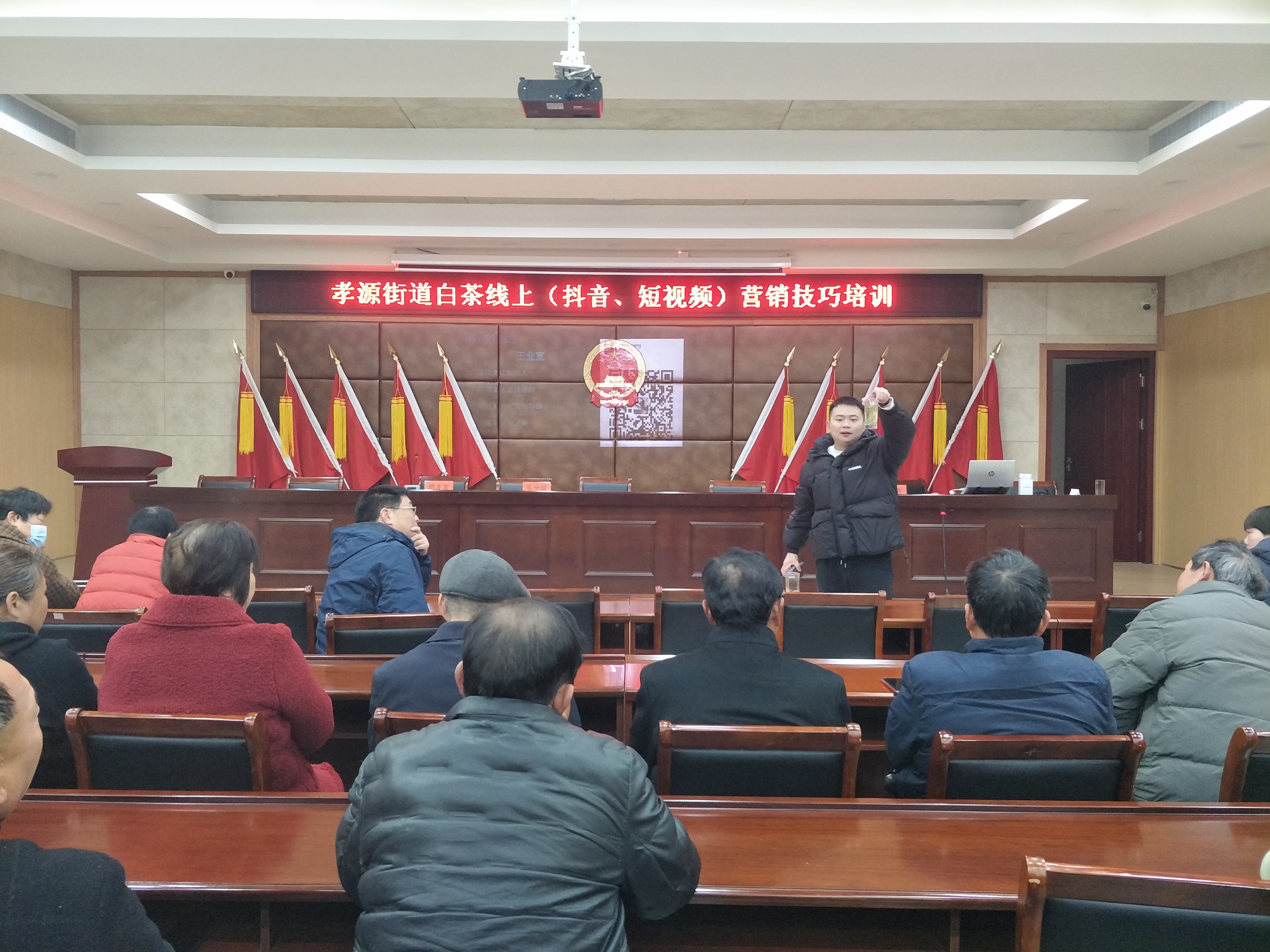 首先由電商直播專業人士王業寬作了題為《白茶線上(抖音、短視頻)營銷技巧》的培訓;接下來,安吉縣農業農村局的數字化技術專業人員為茶農們進行白茶APP安裝等業務輔導;孝源農商行的工作人員緊隨其后為學員講解金融助農政策等綜合服務內容并進行防電信詐騙和人民幣真假辨識宣傳與提醒;安吉縣燃氣公司的專業人員秉持“防患于未然”的理念為大家講了茶葉炒制過程中使用燃氣等安全生產方面的內容;最后,街道農技站站長郎友富向各位茶農解讀縣白茶高質量發展大會中的惠農政策并對整個培訓進行了總結。