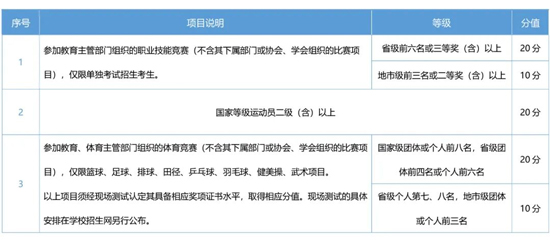 在高中階段,凡符合下列條件之一者,可在素質(zhì)特長考評中獲得相應(yīng)的考評分,同一考生同類項(xiàng)只取高分項(xiàng);不同類項(xiàng)可累加,但累加最高不超過20分。