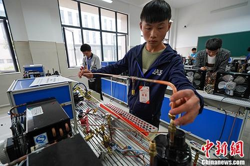 資料圖:貴州電子科技職業(yè)技術(shù)學(xué)院,一名學(xué)生在參加制冷與空調(diào)設(shè)備與調(diào)試維護(hù)組別比賽。 中新社記者 賀俊怡 攝