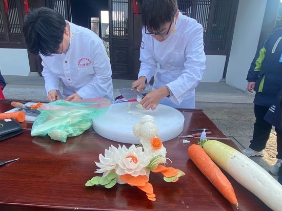 學校優(yōu)秀“陽光使者”們在校團委的帶領下,深入齊賢光明居,開展烹飪雕刻、衛(wèi)生清掃、現(xiàn)場繪制帆布袋等志愿服務活動。烹飪專業(yè)的學生拿起刻刀,鋒利的刀刃游走于蘿卜之上,不一會兒,一朵朵優(yōu)雅高潔的蘿卜花便呈現(xiàn)在路人面前;美術專業(yè)的學生們當場為路人在帆布袋上作畫,通過贈送的形式將這份美好傳遞給大家;其他學生則將光明居廣場進行了徹底清掃,雖然石板地歷經(jīng)滄桑,各種凹陷和縫隙加大了清掃難度,但是,同學們干勁十足,勞動場面熱火朝天,在大家的共同努力下,石板地煥然一新。