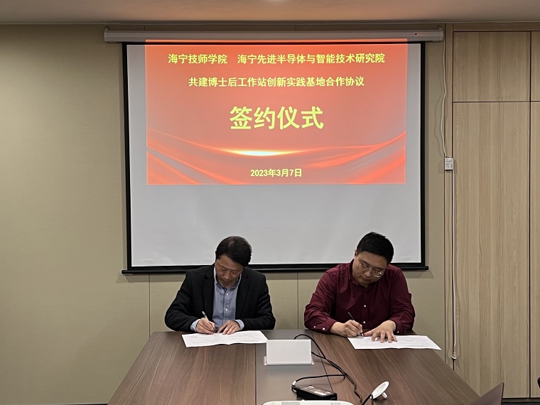 3月7日,海寧技師學(xué)院與海寧先進(jìn)半導(dǎo)體與智能技術(shù)研究院共建博士后工作站創(chuàng)新實(shí)踐基地簽約儀式,在海寧先進(jìn)半導(dǎo)體與智能技術(shù)研究院進(jìn)行,陳海鋒院長(zhǎng)和張旭院長(zhǎng)簽署了合作協(xié)議。