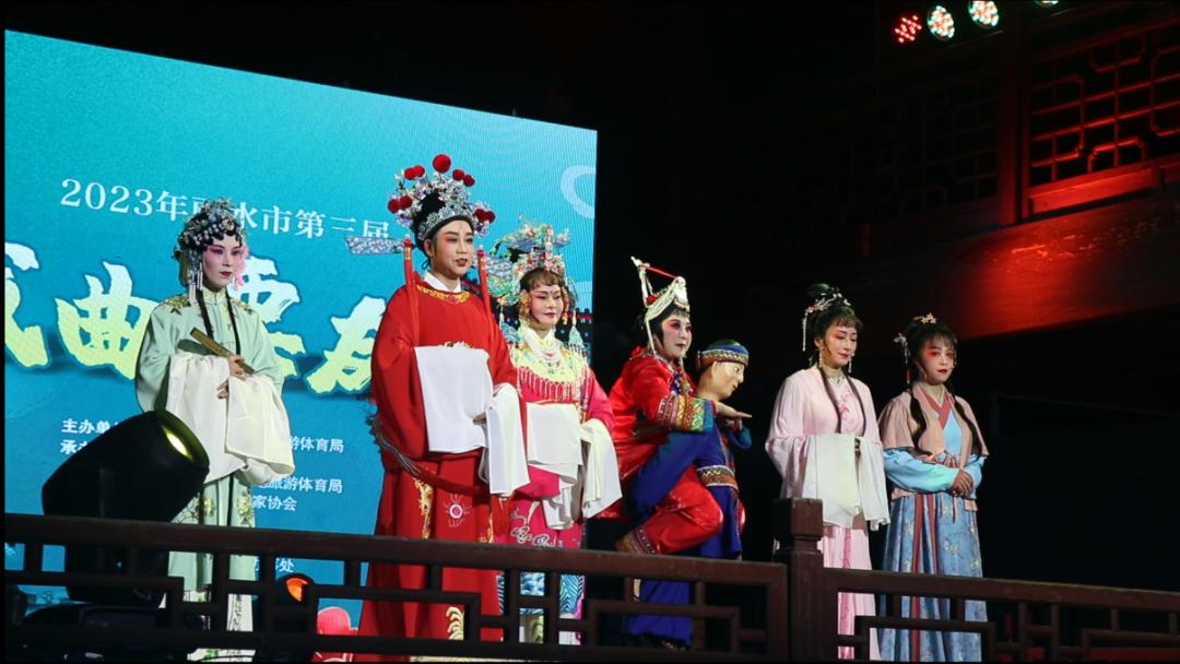 “鶯鶯燕燕盈盈,當當彩彩停停,舞臺上濃濃烈烈一抹疊翠;高樓淺月低歌,粉面桃花折扇,顧盼間娉娉裊裊一闕唱詞”。來自麗水市9個縣區的33名票友輪番上場,同臺競技,韻味十足,一招一式、一腔一調都拿捏得恰到好處。整場大賽曲種豐富,有處州亂彈、越劇、昆曲、京劇、婺劇等。