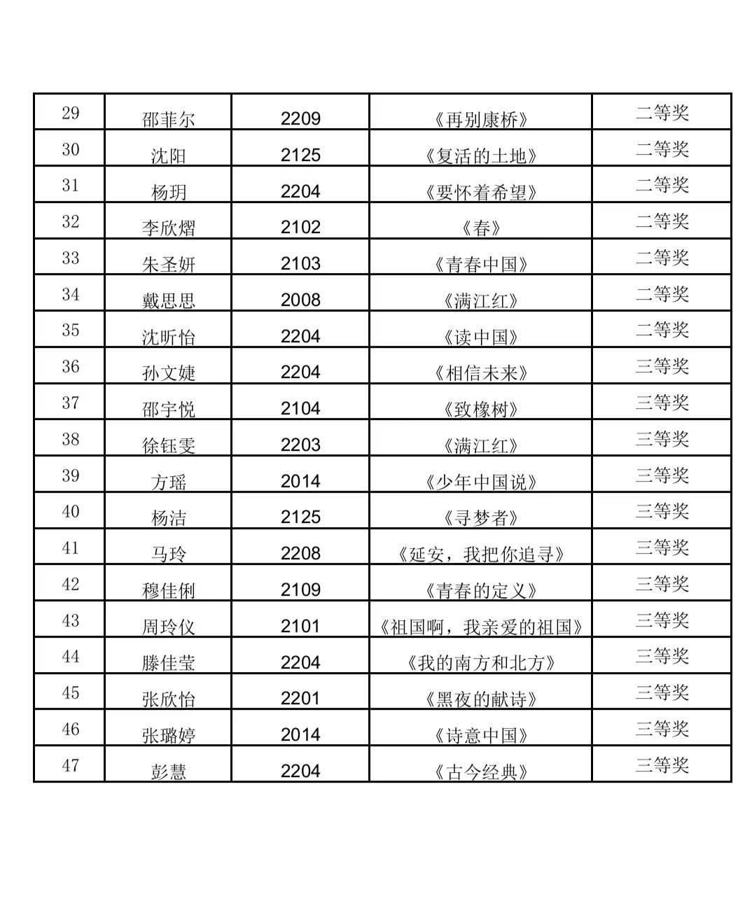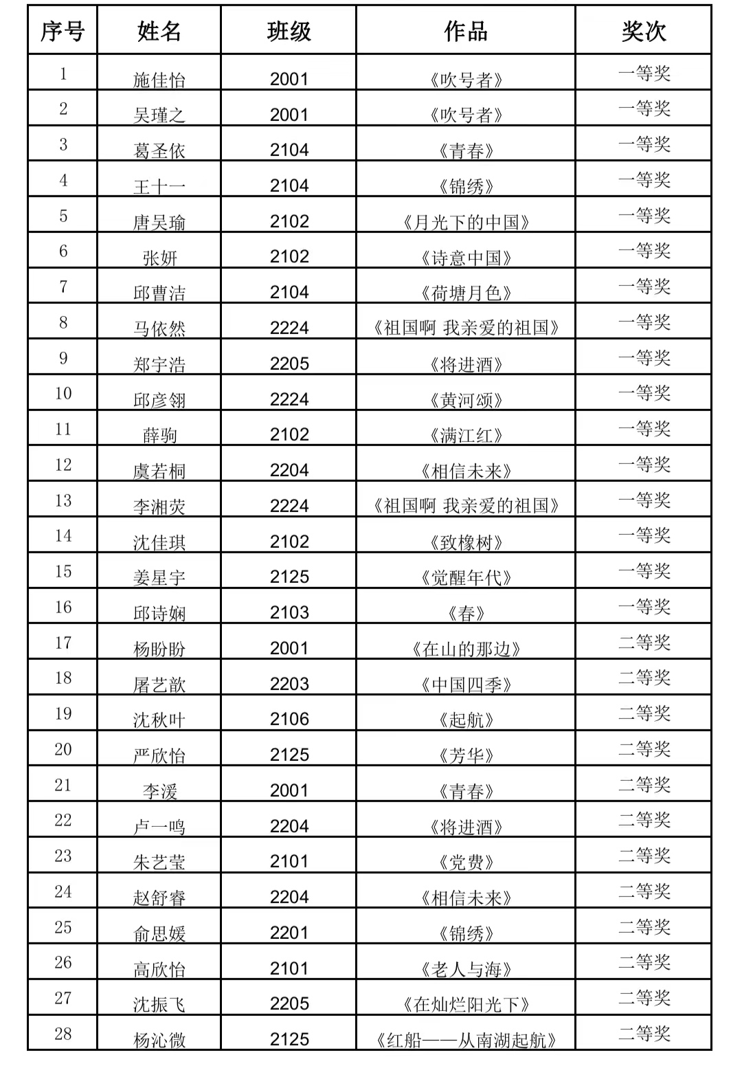 本次活動為廣大學(xué)生提供了展示、鍛煉自我的平臺,深化了同學(xué)們濃烈的愛國情懷,增強了新時代中職學(xué)生的文化自信,展現(xiàn)了朝氣蓬勃、銳意進取的良好風(fēng)貌。活動最終評出一等獎16名,二等獎19人,三等獎11人。(章璇)