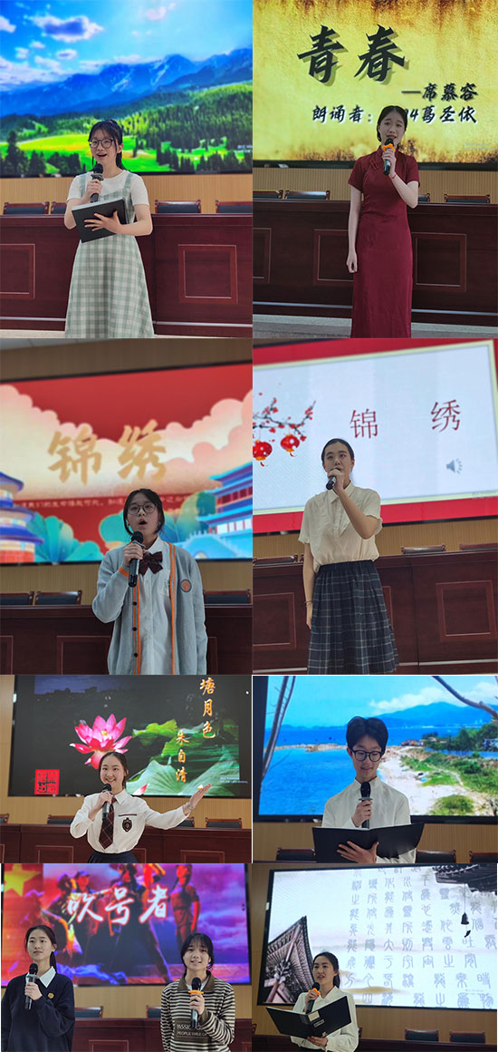 比賽當(dāng)天,現(xiàn)場共有來自不同專業(yè)部的47名選手,他們鏗鏘有力、聲情并茂地演繹了古今經(jīng)典名篇《滿江紅》《將進酒》《相信未來》《致橡樹》等作品,展示了中國傳統(tǒng)文化經(jīng)典名篇的無窮魅力。