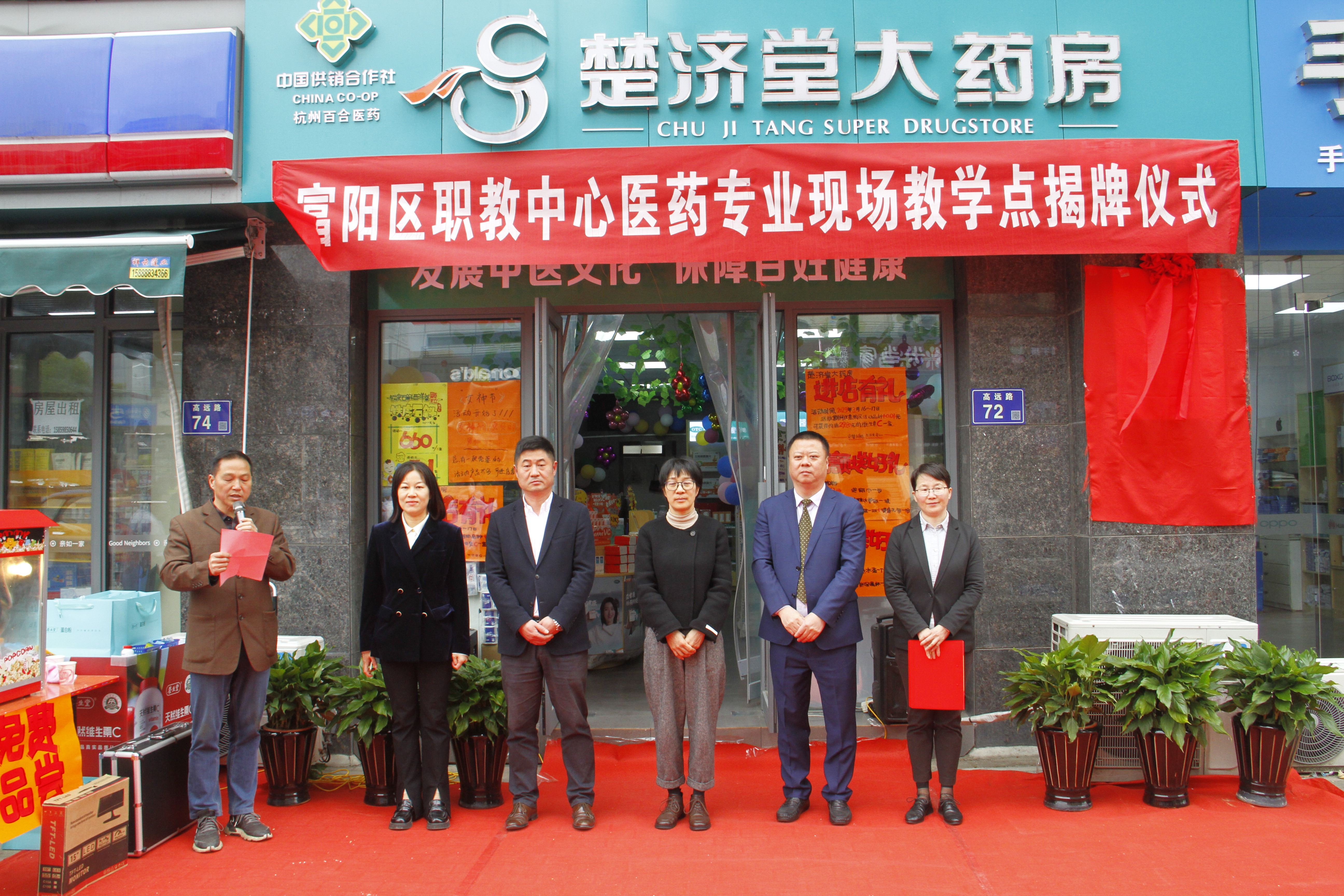 揭牌儀式由富陽區職教中心副校長黃宏忠主持,富陽區市場監管局黨委委員、總工程師劉華紅,浙江楚濟堂醫藥發展有限公司董事長、區工商聯副主席王哲平,富陽區職教中心校長孫良杰、副校長孫利華,醫化服裝部部長汪愛婭、副部長章可成,以及部分師生代表參加揭牌儀式。