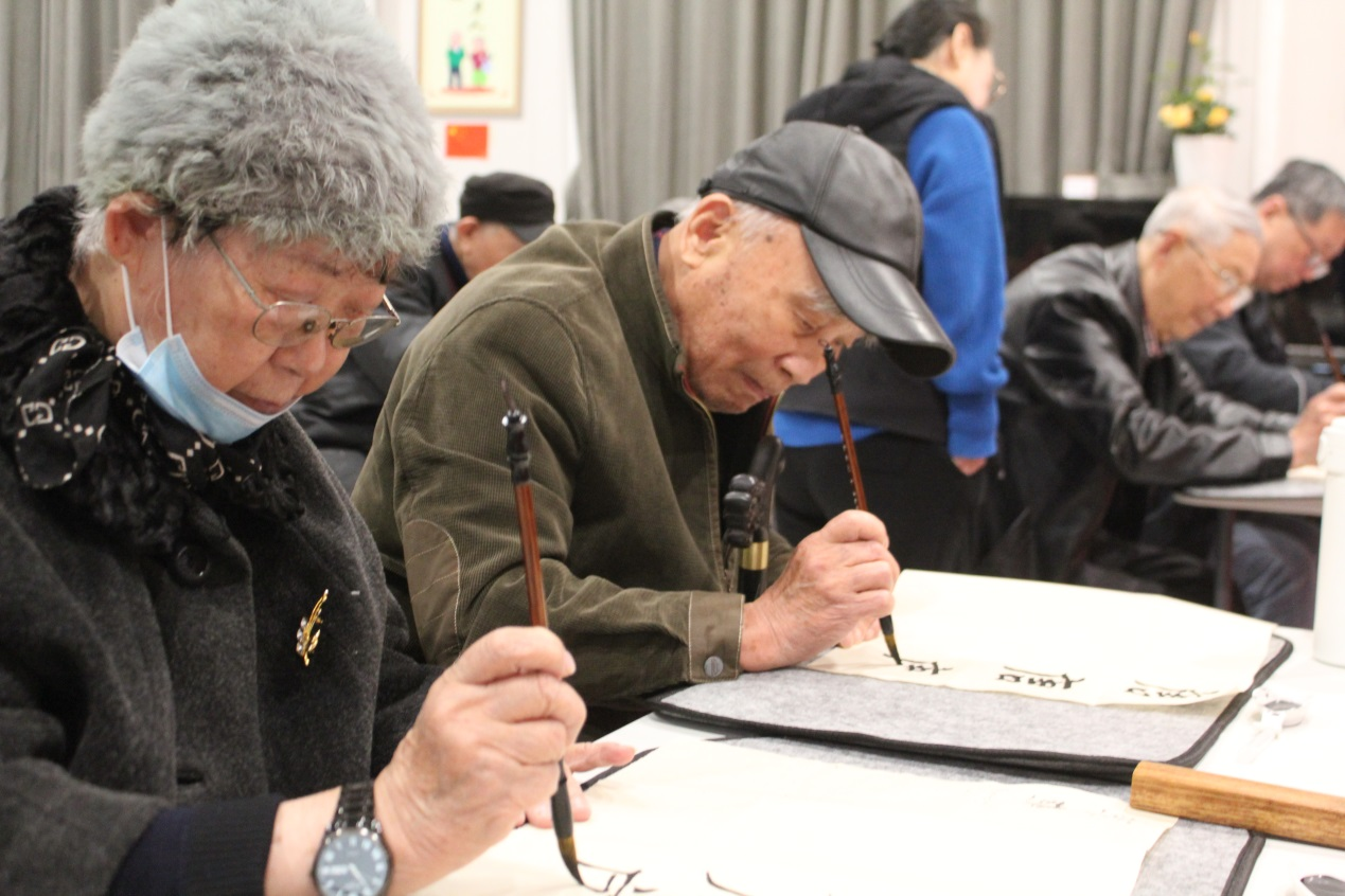 揭牌儀式后,原德清職業中專校長、德清縣書畫院副院長、湖州書協會員房春泉老師為教學點的首批學員面授第一堂書法課。老年學員們認認真真地鋪好紙,拿起筆,邊聽邊學邊練,在寧靜祥和的氣氛中,時光仿佛倒流到了他們年少的時候。