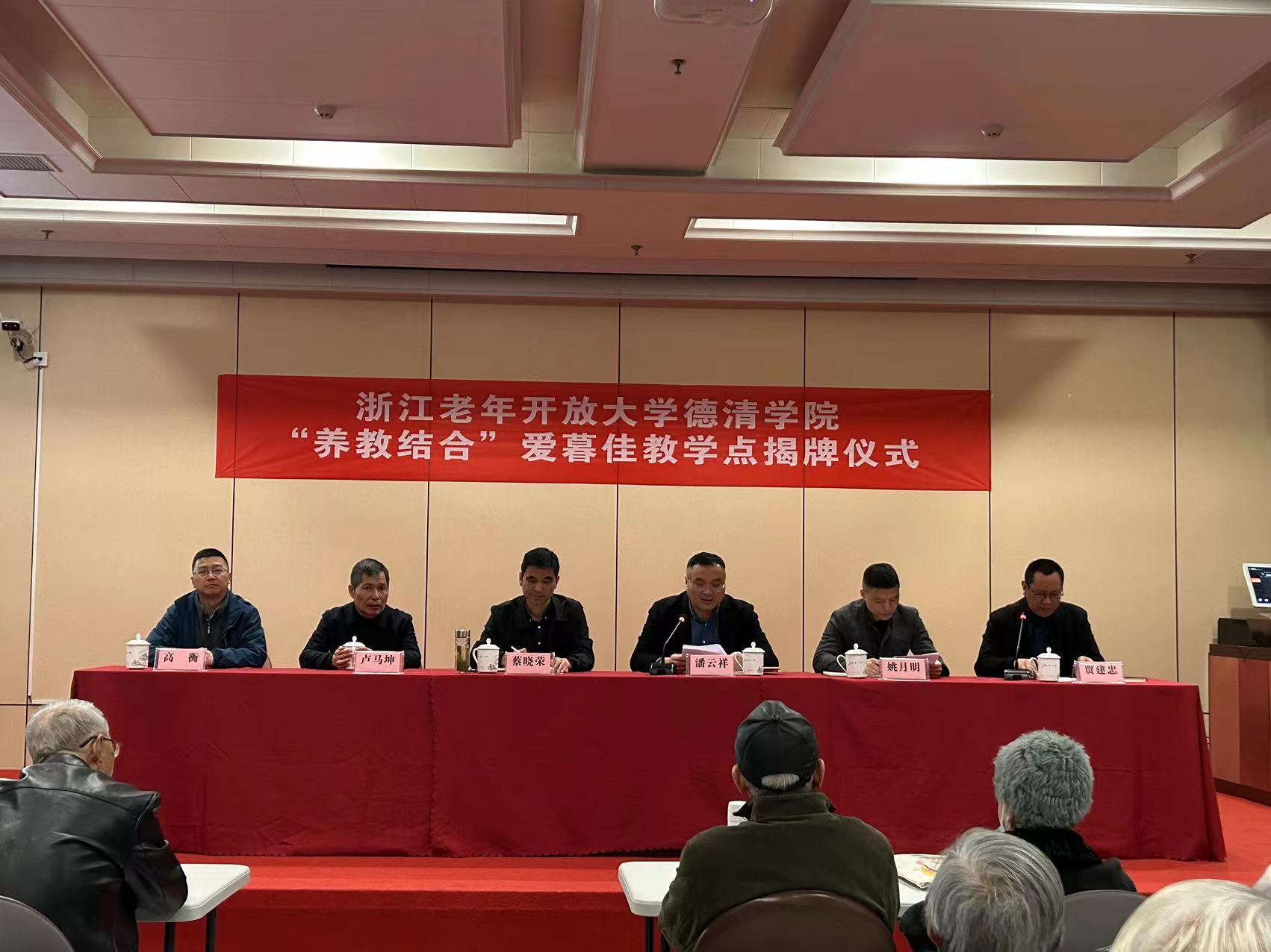 揭牌儀式上,潘云祥首先致辭。他表示,愛暮佳作為德清學院老年教育“養教結合”項目的首個試點單位,標志著德清縣在推進老年教育向更深層次、更高水平、更加普惠發展上有了新的突破。教學點要圍繞“增長知識、豐富生活、陶冶情操、促進健康、服務社會”的辦學宗旨,堅持正確的政治方向和面向大眾辦學指導思想,堅持靈活的授課方式,滿足老年朋友“求知、求新、求樂”的愿望,切實成為老年人更新知識的平臺、文化娛樂的陣地、延年益壽的樂園。