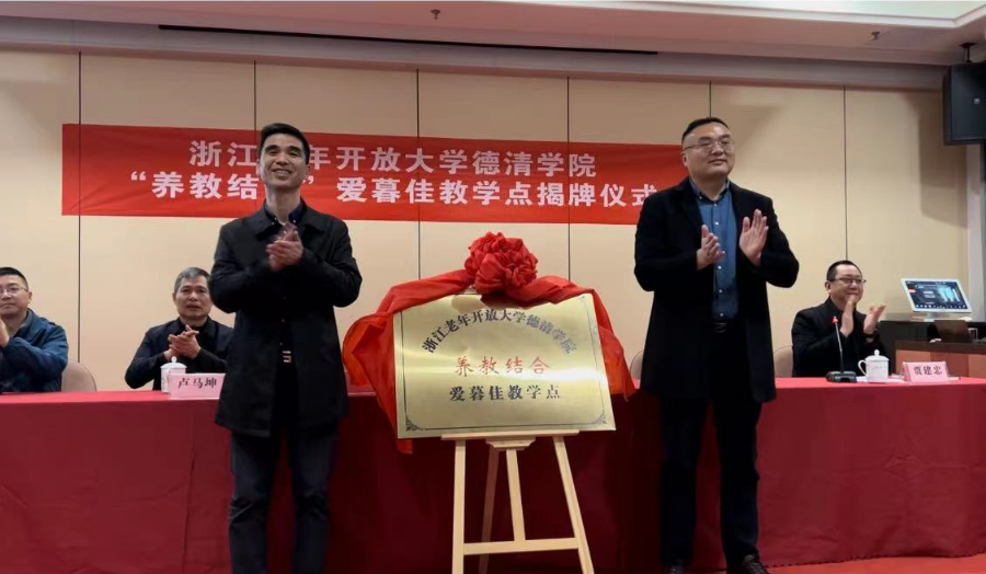 3月24日上午,浙江老年開放大學德清學院“養教結合”愛暮佳教學點舉行揭牌儀式。這是德清縣首個“養教結合”并輻射周邊社區的老年開放大學教學點。德清縣民政局副局長蔡曉榮、縣教育局副局長潘云祥、愛暮佳怡養中心董事長盧馬坤等領導及首批老年學員出席揭牌儀式。揭牌儀式由浙江開放大學德清學院院長賈建忠主持。