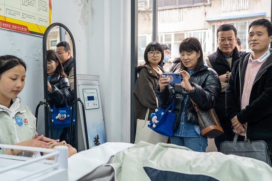 一行人在學(xué)校副校長吳俊聲的帶領(lǐng)下參觀了該校“禮·匠·商”融合教育基地。這是集教師實(shí)踐、創(chuàng)業(yè)孵化、學(xué)生實(shí)訓(xùn)、社會(huì)服務(wù)、市場營銷、融媒體中心為一體的“美業(yè)一條街”,是學(xué)校產(chǎn)教融合、校企合作的具體落地??疾靾F(tuán)一致認(rèn)為,溫二職專在校企合作、產(chǎn)教融合方面具有創(chuàng)新意識和前瞻性,所推行的“新混改”模式具有很高的借鑒意義??疾靾F(tuán)還參觀了學(xué)校金融證券實(shí)訓(xùn)室、保險(xiǎn)實(shí)訓(xùn)室、美容實(shí)訓(xùn)室、美發(fā)實(shí)訓(xùn)室、美甲實(shí)訓(xùn),對學(xué)校信息化應(yīng)用、教育教學(xué)工作給予了充分肯定。
