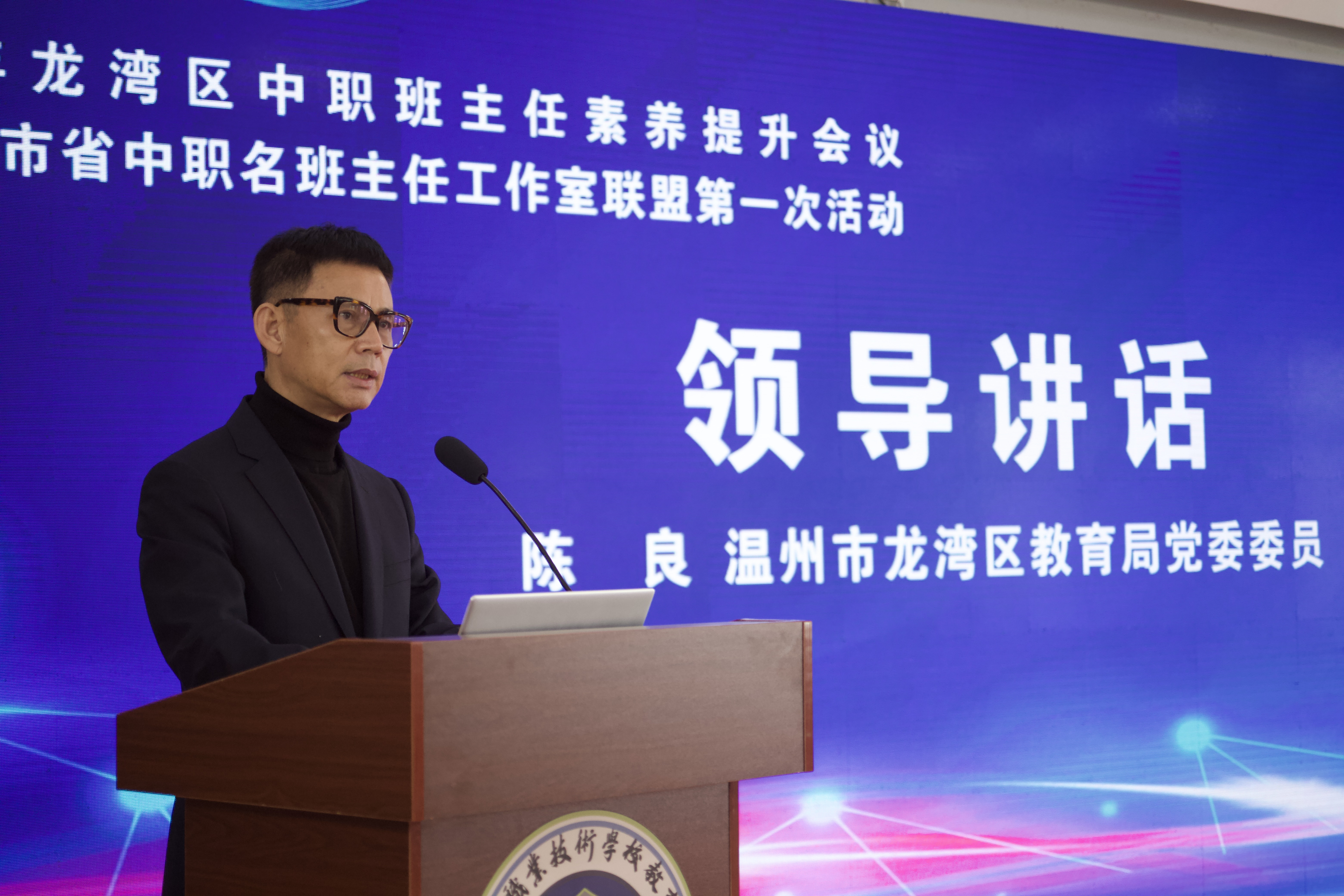 3月28日,2023年龍灣區中職班主任素養提升會議暨溫州市省中職名班主任工作室聯盟第一次活動在溫州市龍灣區職業技術學校隆重舉行。各中職學校德育校長、政教主任及名班主任工作室主持人等150余人參加了本次活動。龍灣區教育局黨委委員陳良、溫州市教育教學研究院中職德育教研員周麗芳出席并作講話。
