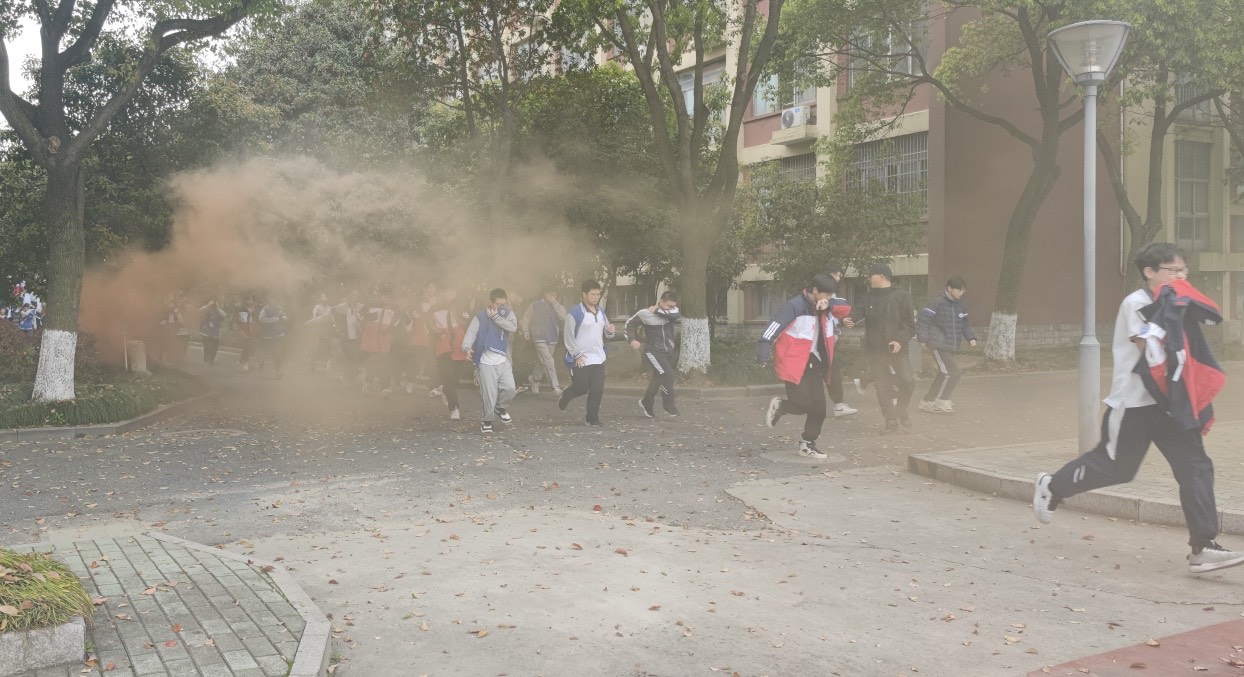 4月3日中午,柯橋區(qū)職業(yè)教育中心突然警鈴大作,寢室樓外濃煙滾滾,“請注意!這是火警廣播!請同學們不要慌亂,聽從指揮,有序撤離!”廣播里傳來了撤離的聲音。同學們用紗布或袖子捂住口鼻,迅速有序地從宿舍樓安全出口逃離。不一會兒,操場上集齊了三千余名住校生。