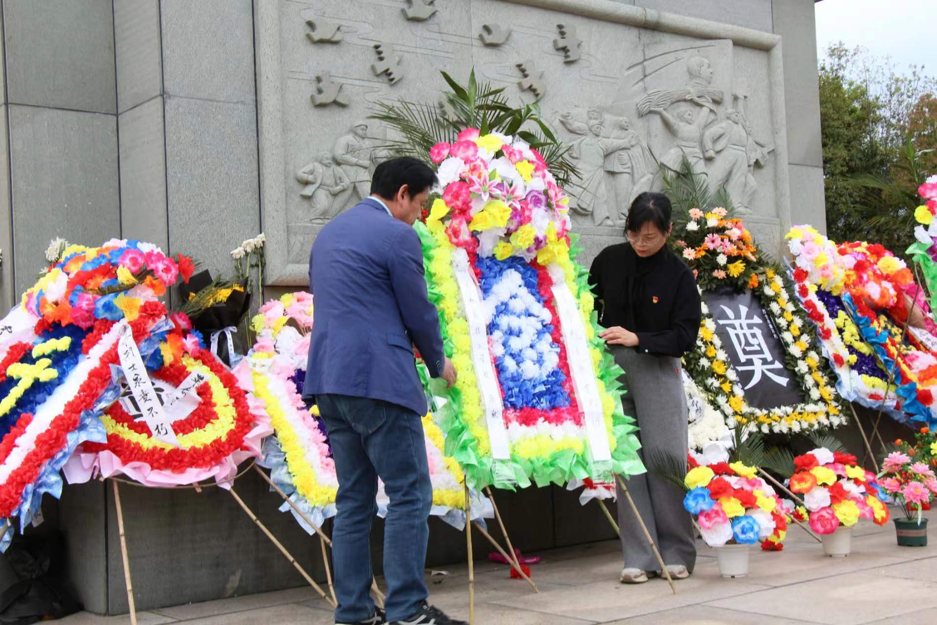 云和職技校黨總支副書記林偉琴,工會主席藍根兒,毛呈章老師,劉可晗老師一同為革命英烈敬獻花圈。