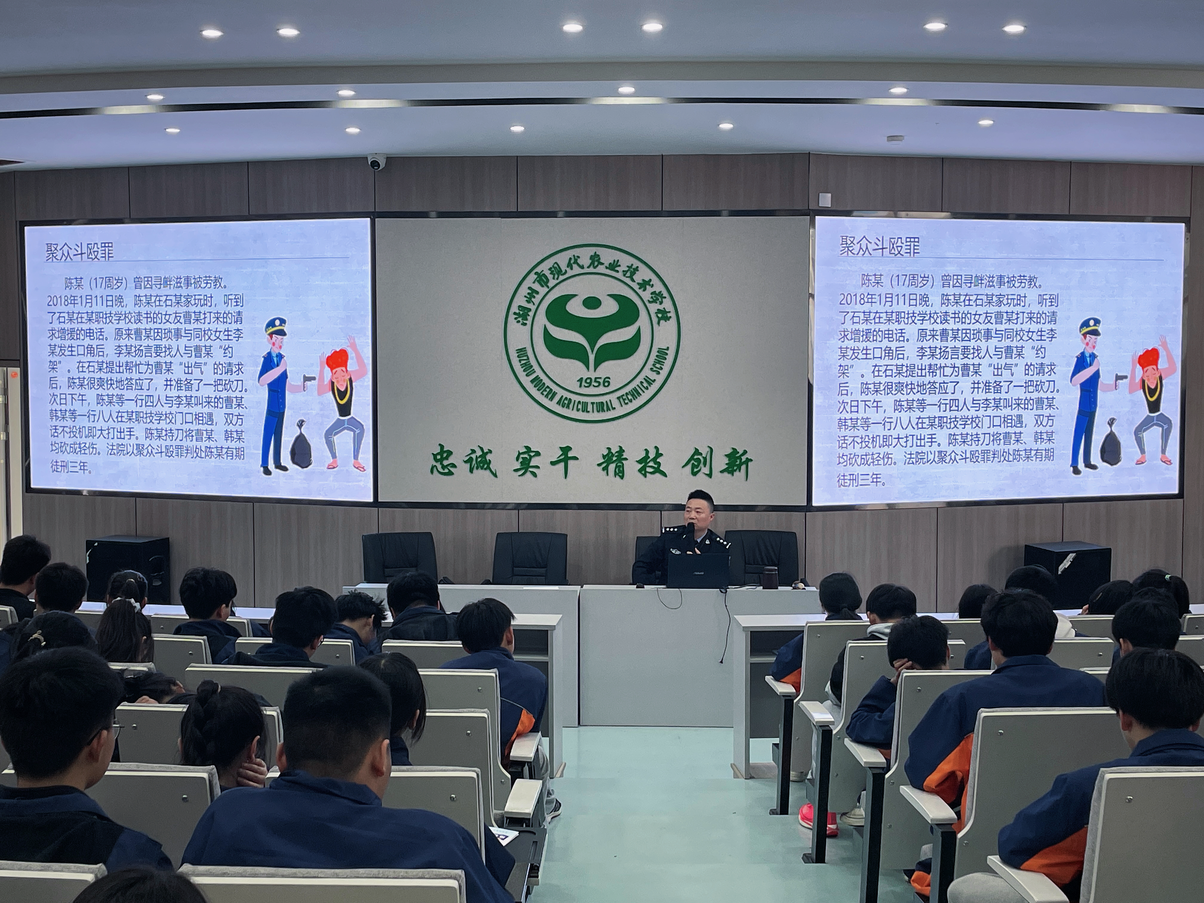 為了進一步增強學校學生法制觀念,預防青少年違法犯罪,維護和諧校園環境,近日,湖州市現代農業技術學校邀請法制副校長,來自埭溪派出所的蔡國峰教導員為同學們帶來了“法制講座進校園,普法人心護成長”專題講座。