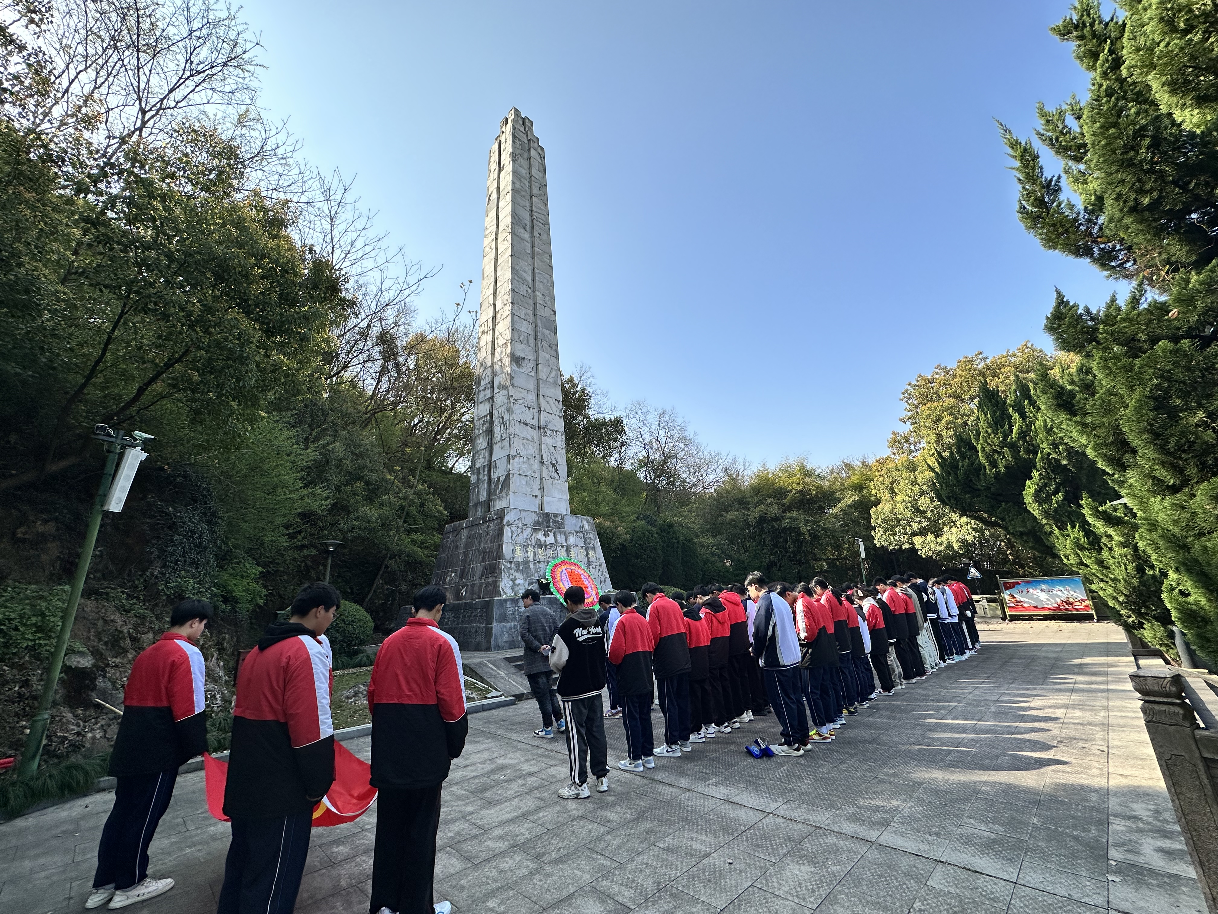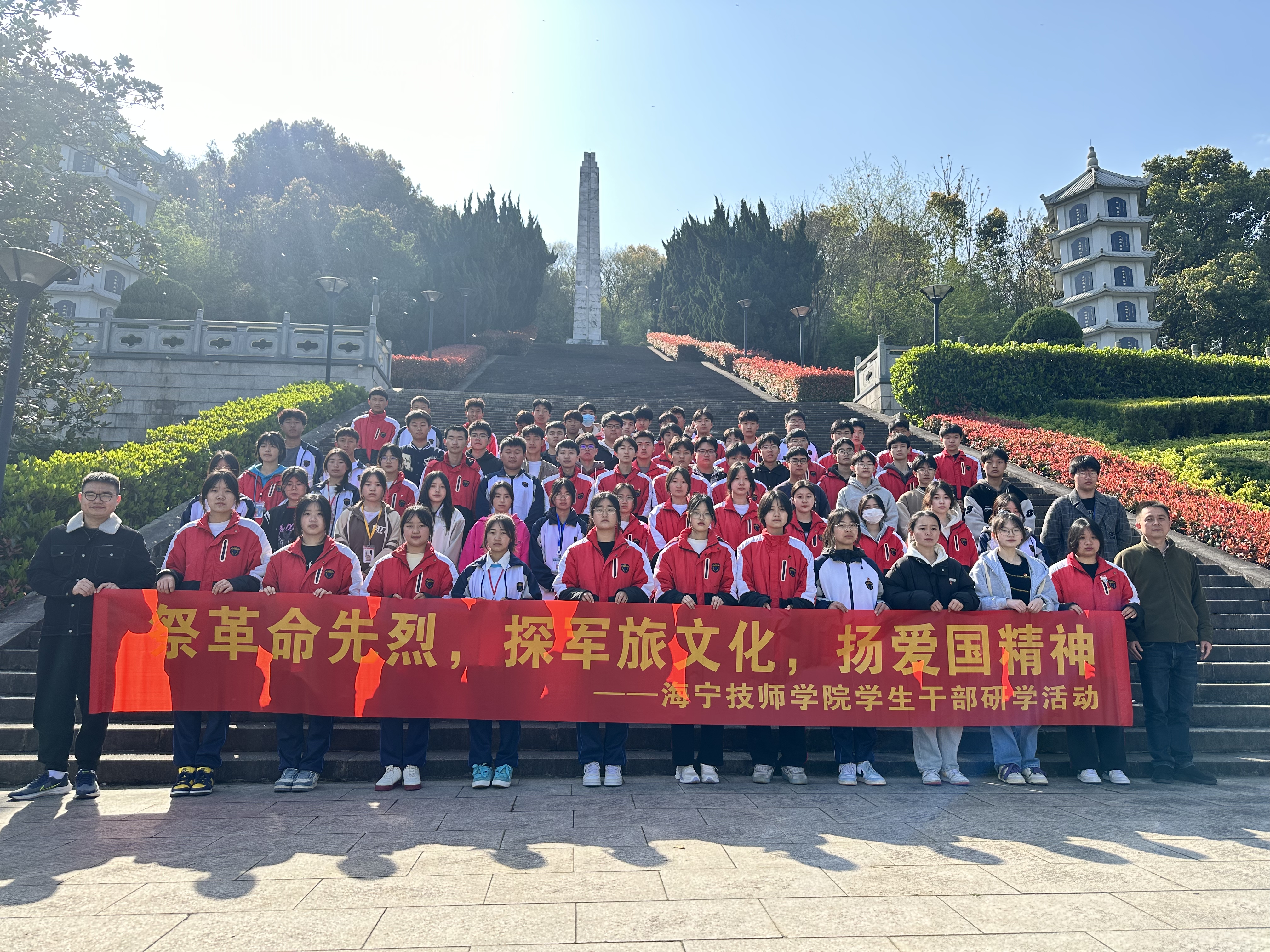 組織“祭革命先烈,探軍旅文化,揚愛國精神”紅色研學活動,學生干部和在校黑水學生共計73人,前往海寧市革命烈士陵園祭掃。同學們向革命烈士紀念碑三鞠躬、默哀致敬,獻上手中的小白花,并在紀念碑前重溫入團誓詞,緬懷革命先烈的英雄功績,接受中華民族烈士精神的洗禮和教育。