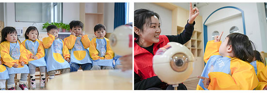 “眼睛對我們有多重要呢?如果沒有眼睛,我們的生活會變成什么樣子呢?”為了真實地體驗看不到的感覺,湖州衛校丁珍珍老師正帶著孩子們開展“假如我的眼睛看不見”的小游戲,孩子們在游戲中明白了眼睛的重要性,提高了愛眼護眼意識。丁珍珍老師根據幼兒的年齡特點,以猜謎語、講故事、做游戲、做眼操等豐富多彩的形式,幫助幼兒糾正錯誤用眼習慣,養成正確用眼姿勢。讓我們用健康科學的方式培養幼兒良好的用眼習慣,用心守護孩子們的“心靈之窗”,助力幼兒健康成長。