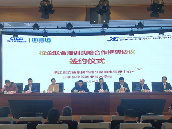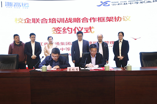 近日,云和縣中等職業技術學校與浙江省交通集團高速公路麗水管理中心成功舉辦聯合培訓戰略合作框架協議簽約儀式。浙江高速公路運營管理中心副總經理陳建甬,機電處處長應豪、副處長周松浩,國家級技能大師劉松榮,云和縣中等職業技術學校黨總支書記、校長陳偉華,副書記林偉琴出席簽約儀式。簽約儀式由云和縣中等職業技術學校培訓處主任周圣成主持。