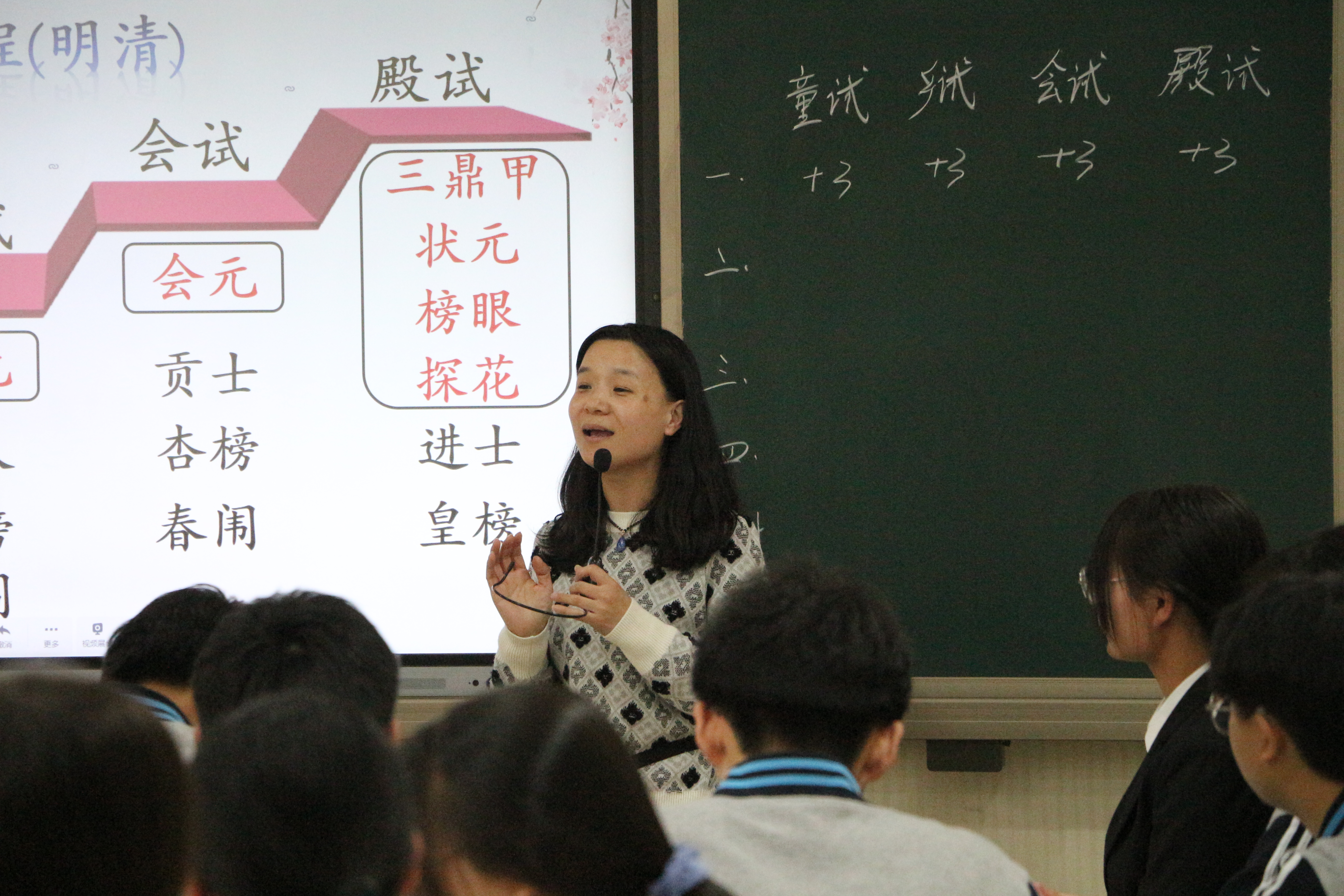 鐘老師以《中國歷史》中的科舉制為主題,融合了旅服專業(yè)核心課程《旅游文化》中科舉制度的知識,進(jìn)行了一次跨專業(yè)、跨學(xué)科的嘗試。以旅行社接到客戶的私人定制為線索,從科舉制度的產(chǎn)生與發(fā)展過程,到明清時(shí)期科舉考試的四個(gè)階段,再到科舉制度的影響三方面對旅行社的四支隊(duì)伍進(jìn)行考核,整堂課目標(biāo)明確、形式多樣,在趣味合作中實(shí)現(xiàn)專史融通,提高了旅服專業(yè)導(dǎo)游詞講解能力,贏得聽課老師的一致好評。