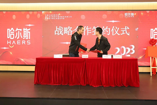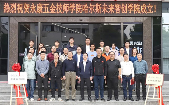 在熱烈掌聲中,呂華福代表永康五金技師學(xué)院與哈爾斯代表呂挺簽訂了戰(zhàn)略合作協(xié)議。雙方領(lǐng)導(dǎo)共同為“永康五金技師學(xué)院哈爾斯未來智創(chuàng)學(xué)院”“永康五金技師學(xué)院哈爾斯未來智創(chuàng)班”揭牌。