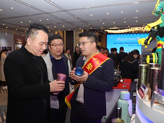 既有為企業(yè)制作的工裝夾具、非標刀桿刀盤,也有若干頗具特色的3D打印作品,還有參加過創(chuàng)新大賽的無鉸鏈防盜門模型,更有現(xiàn)場展示的電商直播環(huán)節(jié)。為讓與會代表更清晰地領略永康五金的魅力,培訓處負責人呂平,鄒鵬、王朝旭等負責接待講解。在永康五金技師學院展臺上,浙江飛劍科技有限公司的鈦杯吸引了不少與會代表,當場就成交了好幾單。(程欣榮 盧江峰)
