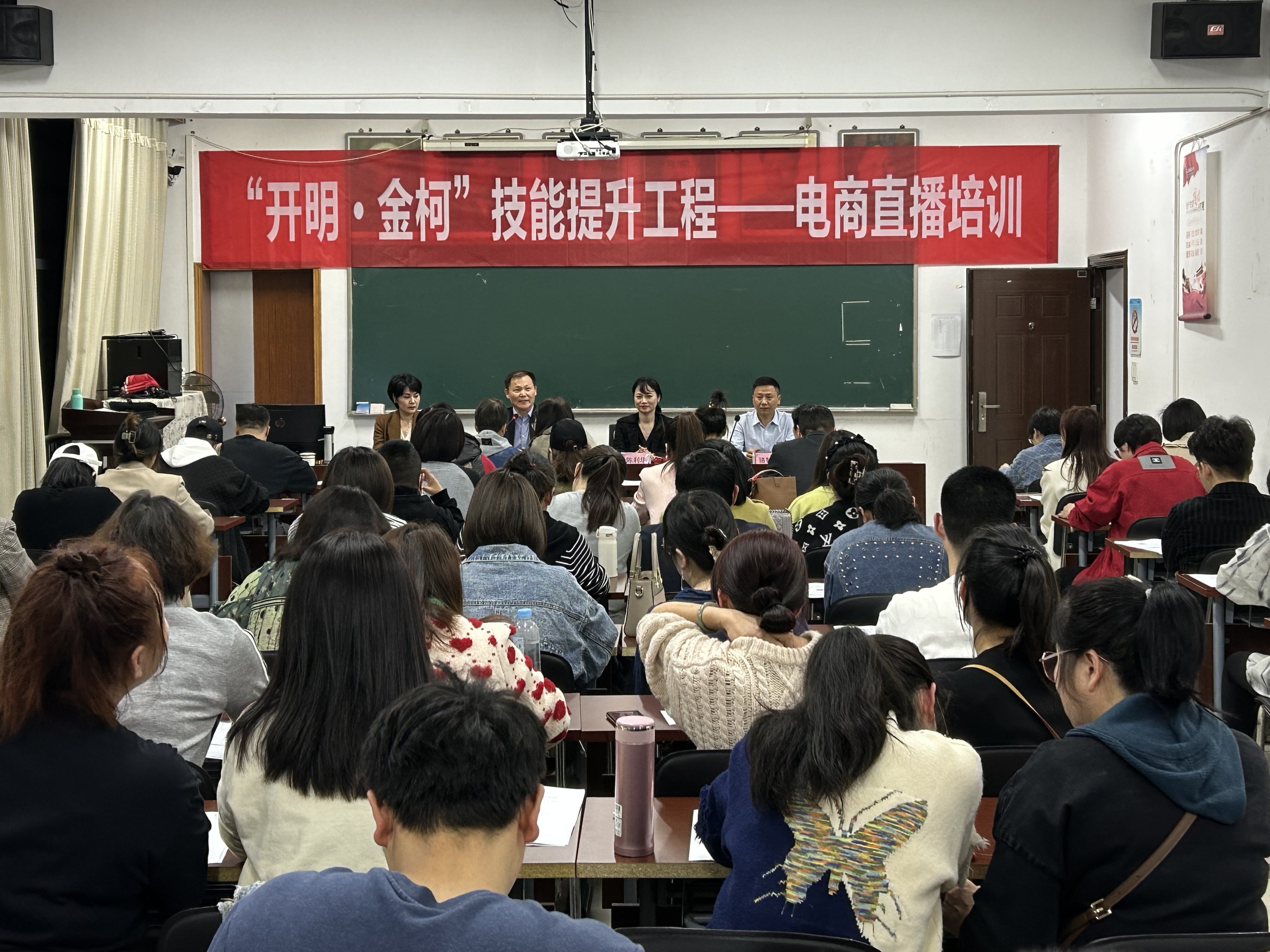為幫助柯橋中小微企業提升電商直播水平,近日,由民進柯橋區基層委發起,柯橋成人文化技術學校承辦的“開明·金柯”技能提升工程——電商直播培訓在柯橋成教中心正式開班。60多名中小企業經營者與自主創業者參加培訓,民進柯橋區基層委副主委金海華、民進柯橋文化傳媒支部主委陳利華、柯橋成校負責人駱智明出席提升工程啟動儀式。