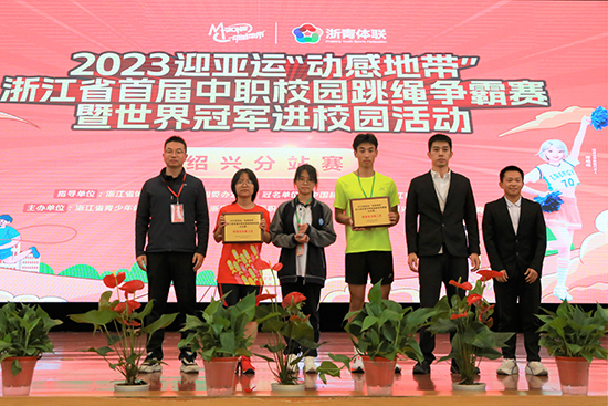 據悉,紹興分站賽主要分為男女30秒單搖跳、男女1分鐘1帶1跳,3分鐘10人長繩“8”字跳、1分鐘10人同步跳,以及花樣繩操固定套路,共七個比賽項目,來自紹興市中職學校9支代表隊的近300名選手開啟了角逐。比賽采用全國運動推廣中心審定的最新《2018-2021年全國跳繩競賽規則》,各單項均采用預決賽同場制,據了解,本次爭霸賽成績優異的運動員將參加6月1日、2日在杭州舉行的全省總決賽。(姚燕陶)