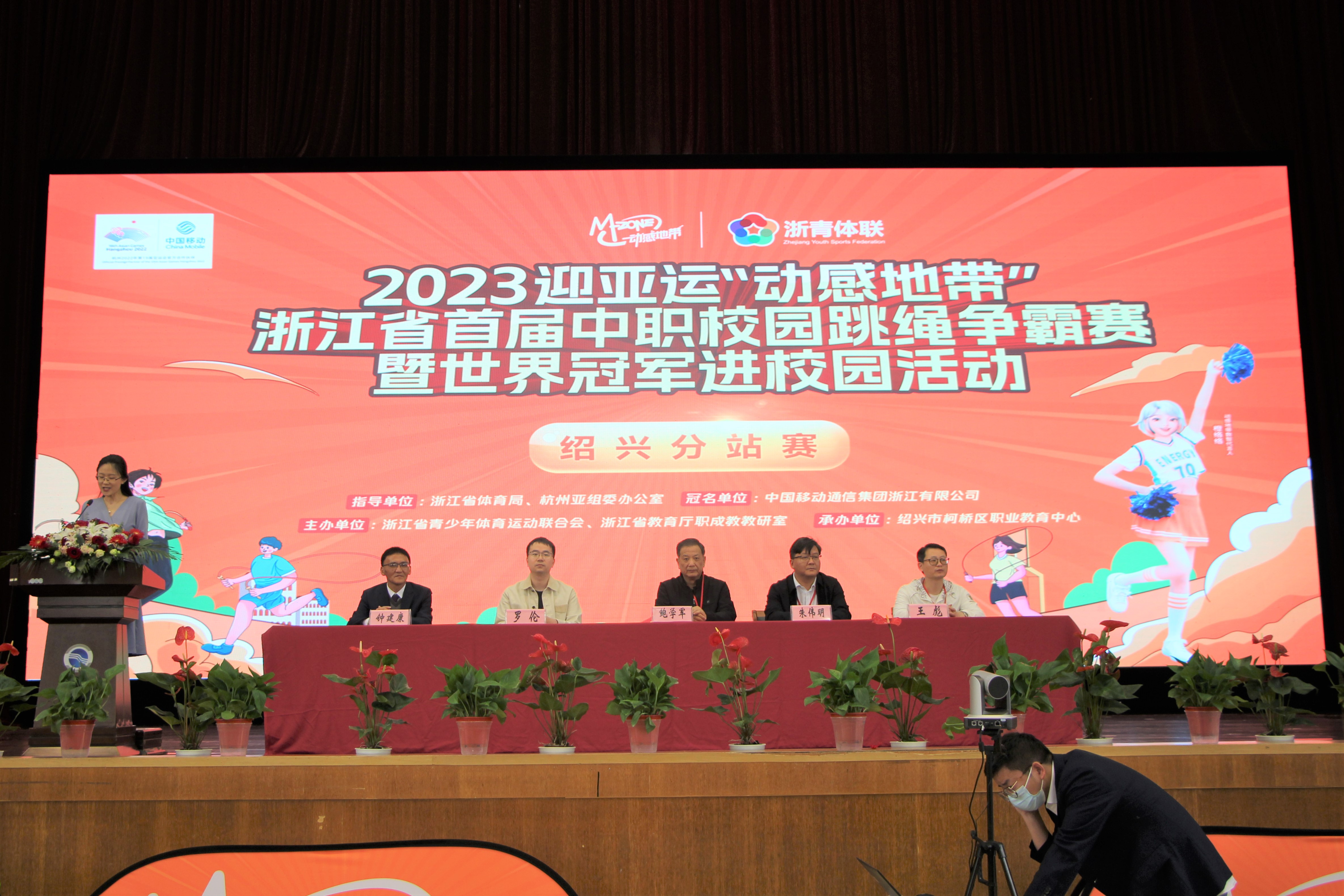 4月21日,由浙江省青少年體育運動聯合會、浙江省教育廳職成教教研室聯合主辦的2023迎亞運“動感地帶”浙江省首屆中職校園跳繩爭霸賽紹興分站賽在柯橋區職業教育中心體育館內隆重開賽。此次活動旨在更好地宣傳杭州亞運會,貫徹實施體教融合,增強中職學生體質健康,提高學生體育運動興趣,培養學生團結協作的精神。浙江省青少年體育運動聯合會會長鮑學軍,省青少年體育運動聯合會副會長羅倫,市教育局黨委委員、副總督學朱偉明,市教育局職業教育教學研究室副主任王彪,浙江省紹興市柯橋區職業教育中心校長鐘建康等領導以及柯橋區職業教育中心近500名學生一起參加活動。