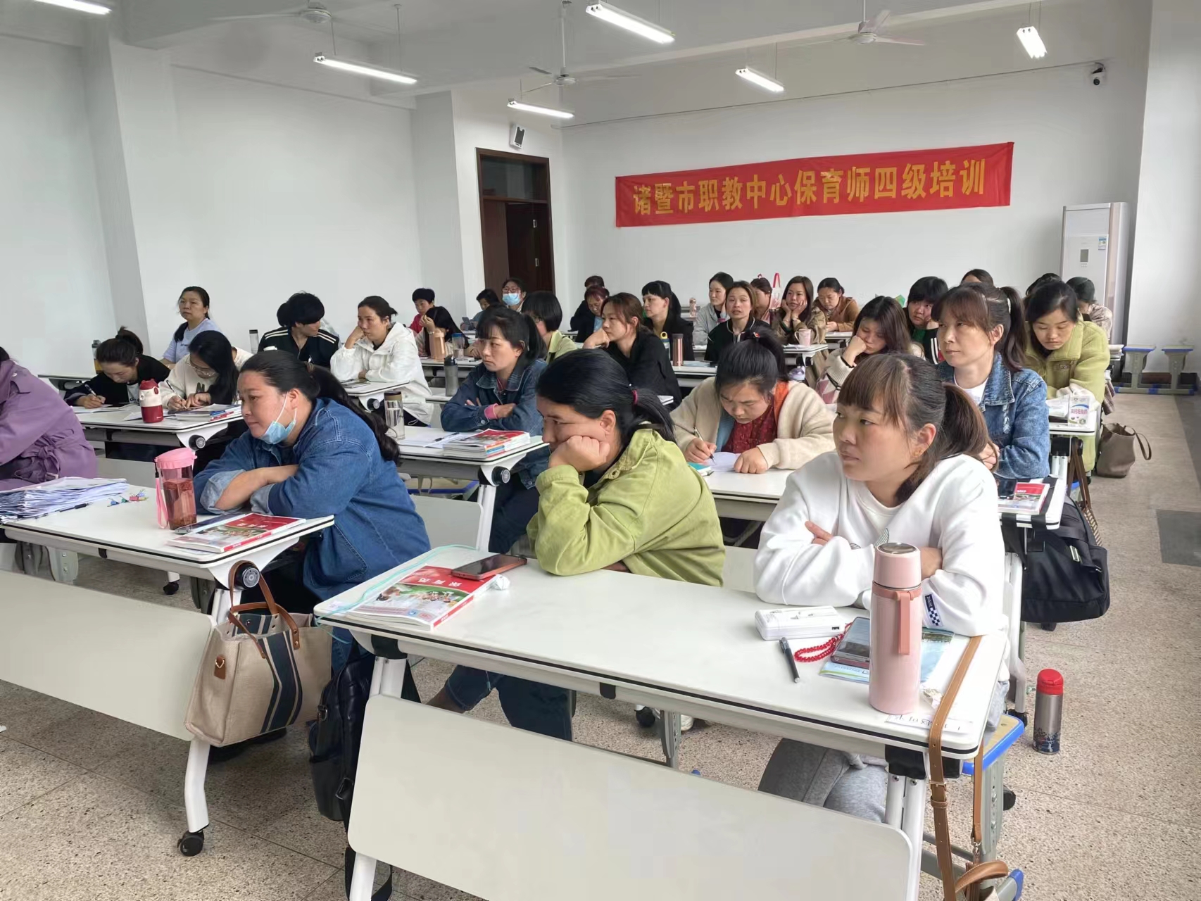 4月22日,周六,諸暨職教中心“越匠樓”三樓幾個培訓室學習技能氛圍濃厚。育嬰員、保育師、茶藝師各技能等級培訓班如火如荼地進行著。