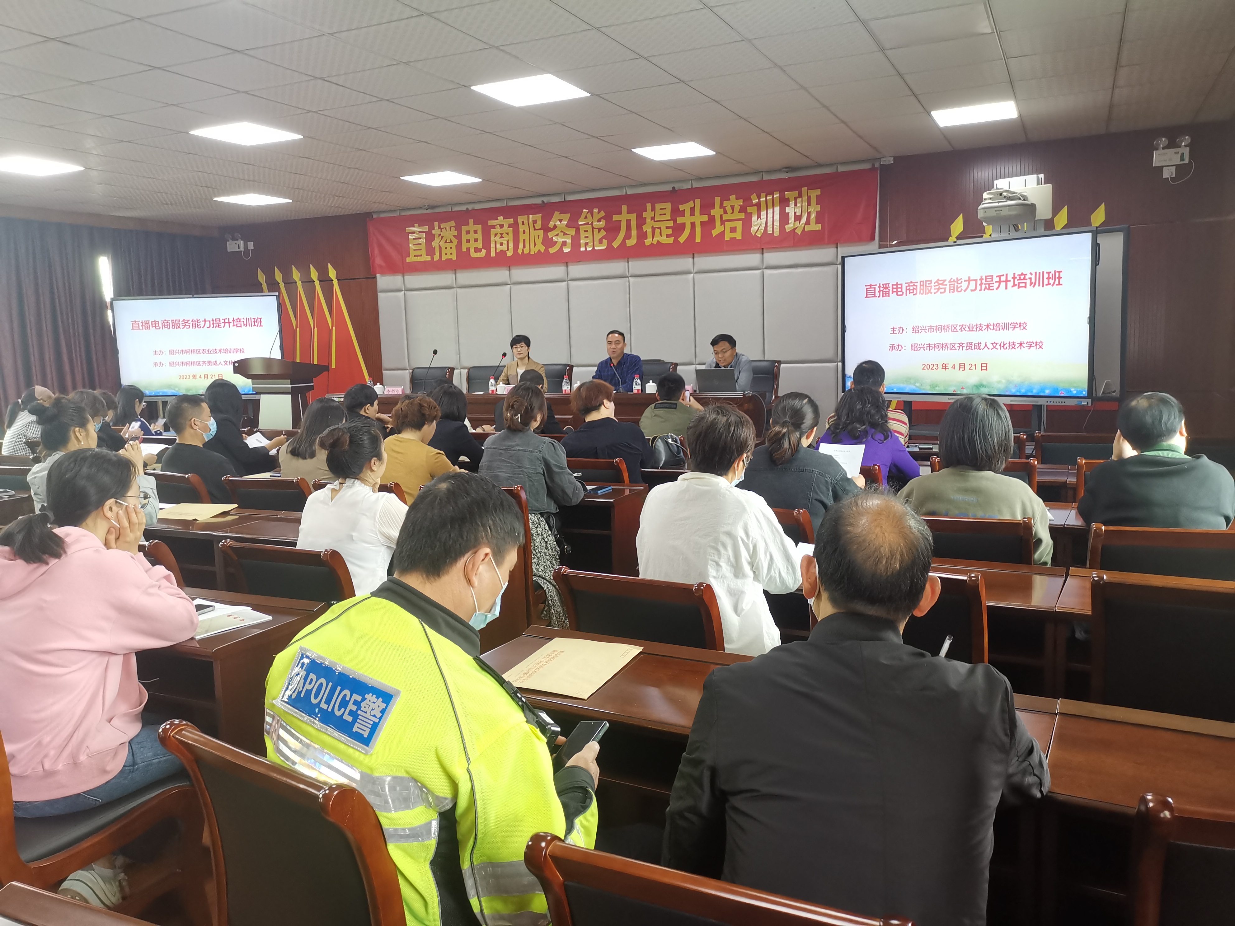 4月21日,紹興柯橋齊賢成人文化技術學校四樓多功能教室內(nèi),70位來自齊賢街道各村居的電商學員參加了直播電商服務能力提升培訓班開班典禮。開班典禮由齊賢成人文化技術學校校長馮明海主持并作宣傳動員,柯橋區(qū)農(nóng)業(yè)技術培訓學校副校長錢英宣布培訓計劃、強調學習要求。