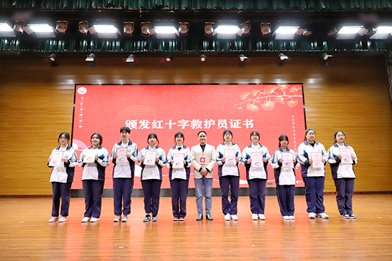 長興縣紅十字會副會長王敏和長興縣人力資源與社會保障局副局長陳靜分別為學生代表分別頒發《急救護理員》和《養老護理員》技能證書;長興縣衛生健康局黨委委員胡偉華等領導為36名優秀畢業生頒發榮譽證書。