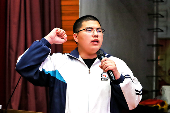同學們帶著激情、感動、溫馨與夢想,以青春的名義莊嚴宣誓:“牢記父母期盼,不忘師恩教誨。銘記厚德博學、仁愛濟世的校訓,珍惜學校榮譽。誠實守信,踏實勤學。今天,我以學校為驕傲,明天母校為我而驕傲。”