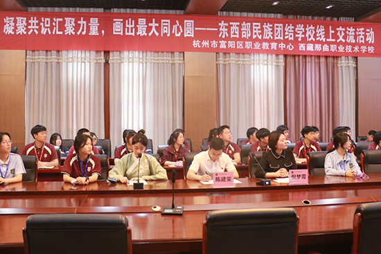 深入貫徹落實(shí)黨的二十大精神,堅(jiān)持鑄牢中華民族共同體意識(shí),促進(jìn)各民族青年交流交往交融,強(qiáng)化各民族青年對(duì)中華文化的認(rèn)同和傳承,構(gòu)筑中華民族共有精神家園,杭州市富陽(yáng)區(qū)職業(yè)教育中心和那曲市職業(yè)技術(shù)學(xué)校聯(lián)合舉辦“凝聚共識(shí),匯聚力量,共話同心圓”云上活動(dòng),兩校師生100余人參加活動(dòng)。