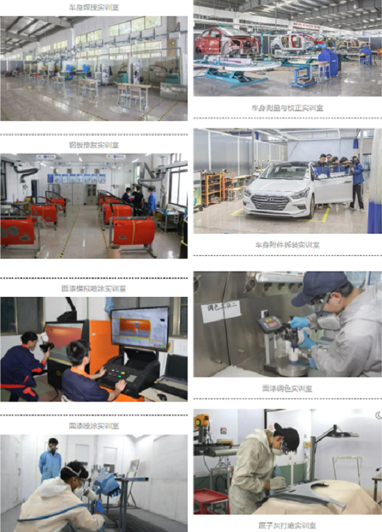 十余年來,校企雙方在實訓基地建設、專業教材開發、師資隊伍建設、專業技能提升等方面的合作成果豐碩。汽車鈑金與涂裝專業現已擁有車身附件拆裝、車身鋼板修復、車身測量與校正、車身焊接、鋁車身修復、車身微損傷修復、原子灰施涂、面漆調色、面漆噴涂等18個實訓室,實訓工位達120個。