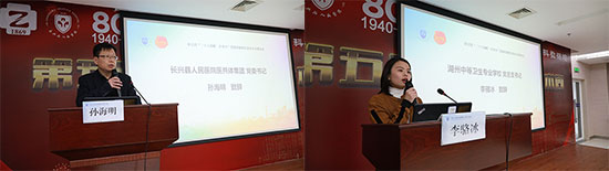 湖州衛(wèi)校與長(zhǎng)興縣人民醫(yī)院是長(zhǎng)期合作的兄弟單位,長(zhǎng)期以來(lái),長(zhǎng)興縣人民醫(yī)院為學(xué)校師生提供了優(yōu)質(zhì)的實(shí)習(xí)實(shí)訓(xùn)場(chǎng)地、優(yōu)秀的帶教師資隊(duì)伍,學(xué)校的許多優(yōu)秀學(xué)子走出校門便投入了人民醫(yī)院的懷抱,成為了杰出的衛(wèi)健人才?;顒?dòng)開始,長(zhǎng)興縣人民醫(yī)院醫(yī)共體集團(tuán)黨委書記孫海明、湖州中等衛(wèi)生專業(yè)學(xué)校黨總支書記李駱冰分別從青年初心、青年使命、青年力量等方面激勵(lì)在座青年不忘歷史、砥礪前行,同時(shí)也表示:青年教師要以良好的風(fēng)貌展現(xiàn)行業(yè)魅力,良好的職業(yè)風(fēng)范引領(lǐng)學(xué)生成長(zhǎng);青年學(xué)子要努力學(xué)習(xí)專業(yè)知識(shí)、勤練操作技能、錘煉道德品質(zhì),希望所有青年始終懷抱對(duì)學(xué)習(xí)、對(duì)夢(mèng)想、對(duì)健康事業(yè)的熱愛(ài),賡續(xù)傳承南丁格爾精神,用青春積淀新偉業(yè)的磅礴力量!