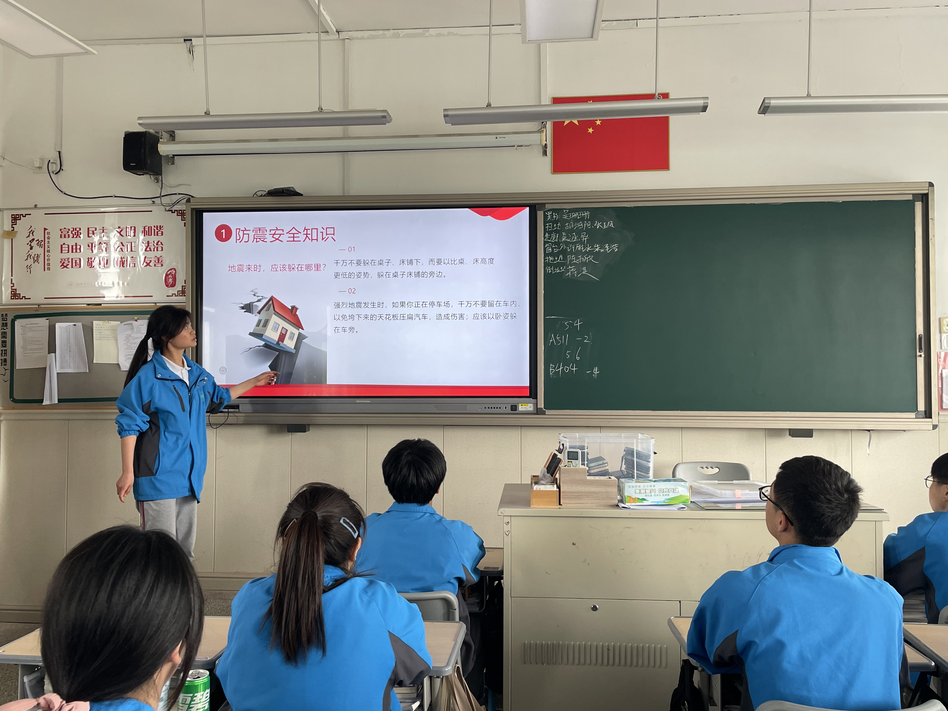 演練開始前,全體師生利用晨會、班會課了解應急避震知識,掌握地震發生時應采取的防護措施和應對方法,熟悉疏散路線。