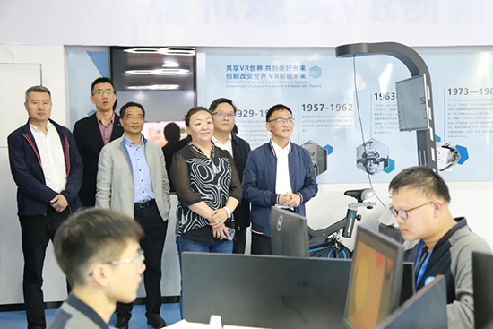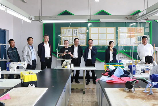 考察組首先參觀了校園,對校園文化和教學情況進行了解,然后來到一號、二號實訓樓和電梯實訓中心,參觀了VR、電商直播、汽修、數控、服裝設計、染整花樣、電梯維保實訓室,考察組一行興致勃勃地查看了學生的實訓內容,對實訓情況大加贊賞。