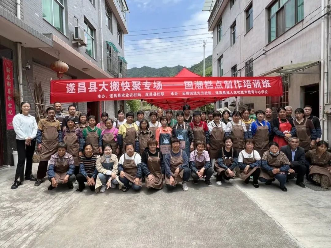 “快來吃喲!山藥糕,南瓜團子、紅豆卷!芝麻切糕、紅豆糕!樣樣都有!”5月10日—11日,國潮糕點飄香,遂昌縣云峰街道九云社區呂家新村,大搬快聚專場糕點制作技能培訓吸引了60多名異地搬遷戶參加學習。