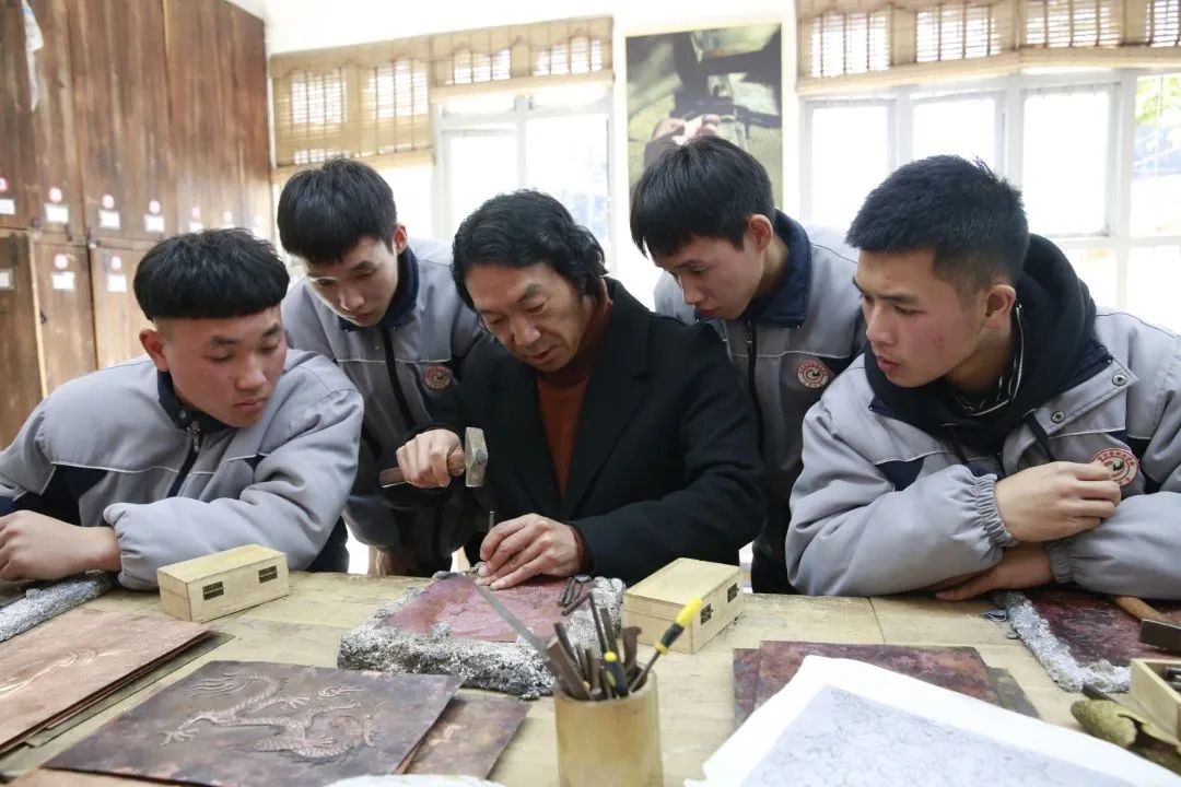 龍泉中職校:云南鏨刻段師傅教學生鏨刻技藝
