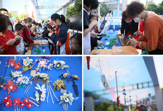 活動中,浙江省湖州藝術與設計學校帶來了四個工作室的專業體驗項目:香包、風鈴制作,手工編織,鑰匙扣制作及美甲服務,同時還有學生的纏花、扎染等作品實物展示,讓社會各界直觀感受和體驗職業教育的精彩。