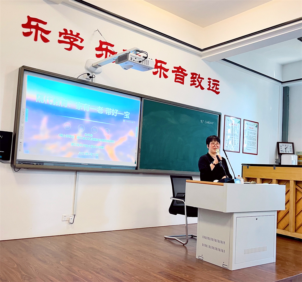 5月15日,在第30個“國際家庭日”來臨之際,浙江老年開放大學長興學院開展了“隔代教育:家有一老 帶好一寶”主題活動,30多名老年學員自主報名參加。學院教師、省社區家庭教育高級指導師白偉香做了專題講座。
