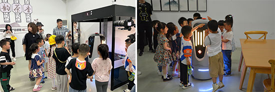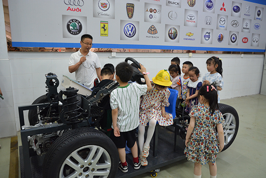 孩子們和家長們在學(xué)校實訓(xùn)處副主任陳佳嬡和學(xué)校園藝專業(yè)教師周偉仙的帶領(lǐng)下,從夢想廣場出發(fā),來到智慧大棚和勞動基地,與大自然親密接觸,體驗傳統(tǒng)農(nóng)業(yè)技術(shù)、現(xiàn)代工程技術(shù)、現(xiàn)代信息技術(shù)綜合運(yùn)用結(jié)合在一起的“智慧農(nóng)業(yè)栽培系統(tǒng)”,感受現(xiàn)代農(nóng)業(yè)的魅力。在學(xué)校實訓(xùn)基地,一排“專業(yè)融清”的平面設(shè)計作品映入大家眼簾,“清廉IP”規(guī)規(guī)矩矩在和小朋友打招呼,在孩子的心中種下一顆“廉潔”的種子。在汽修職業(yè)體驗中心,孩子們被汽車模型深深吸引,“這就是汽車肚子里的秘密嗎?”“汽車是喝汽油的,汽油裝在哪里呀?”“什么是新能源汽車?”張科鋒老師為孩子們一一解答,“汽車創(chuàng)意夢”由此啟動。剛走進(jìn)物聯(lián)網(wǎng)職業(yè)體驗中心,可愛的服務(wù)機(jī)器人就向孩子們打招呼了。在朱鑫浩老師的引導(dǎo)下,一起了解“萬物互聯(lián)”的神奇世界。