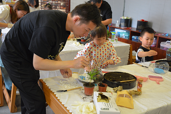 在旅游與酒店職業(yè)體驗中心,濃濃的咖啡香一下子吸引了大家。小朋友們齊動起手,試試研磨咖啡豆,了解手沖咖啡的故事。參觀了盤扣實訓(xùn)室里精美的非遺盤扣作品,大家一起坐下來聽敖素燕老師帶來精彩的微景觀制作課堂。孩子們和爸爸媽媽一起,認(rèn)真聆聽,并在老師指導(dǎo)下,動手制作獨(dú)一無二的作品。