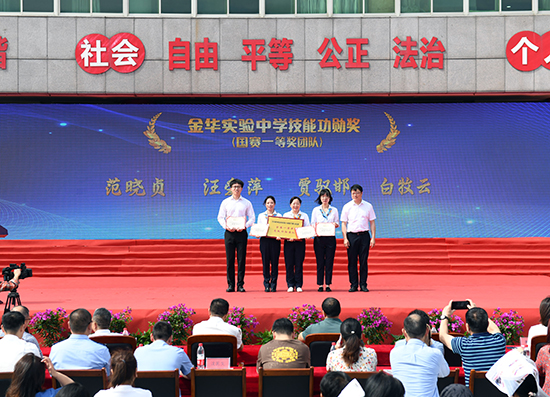 為大力宣傳勞模精神、勞動精神、工匠精神,弘揚(yáng)勞動光榮、技能寶貴、創(chuàng)造偉大的時代風(fēng)尚,展示職業(yè)教育重大改革發(fā)展成果,展現(xiàn)新時代技能人才風(fēng)采,5月18日,婺城區(qū)職業(yè)技能活動周暨“婺城工匠學(xué)院”揭牌儀式在金華實驗中學(xué)成功舉行,本次活動周的主題是“技能——讓生活更美好”。