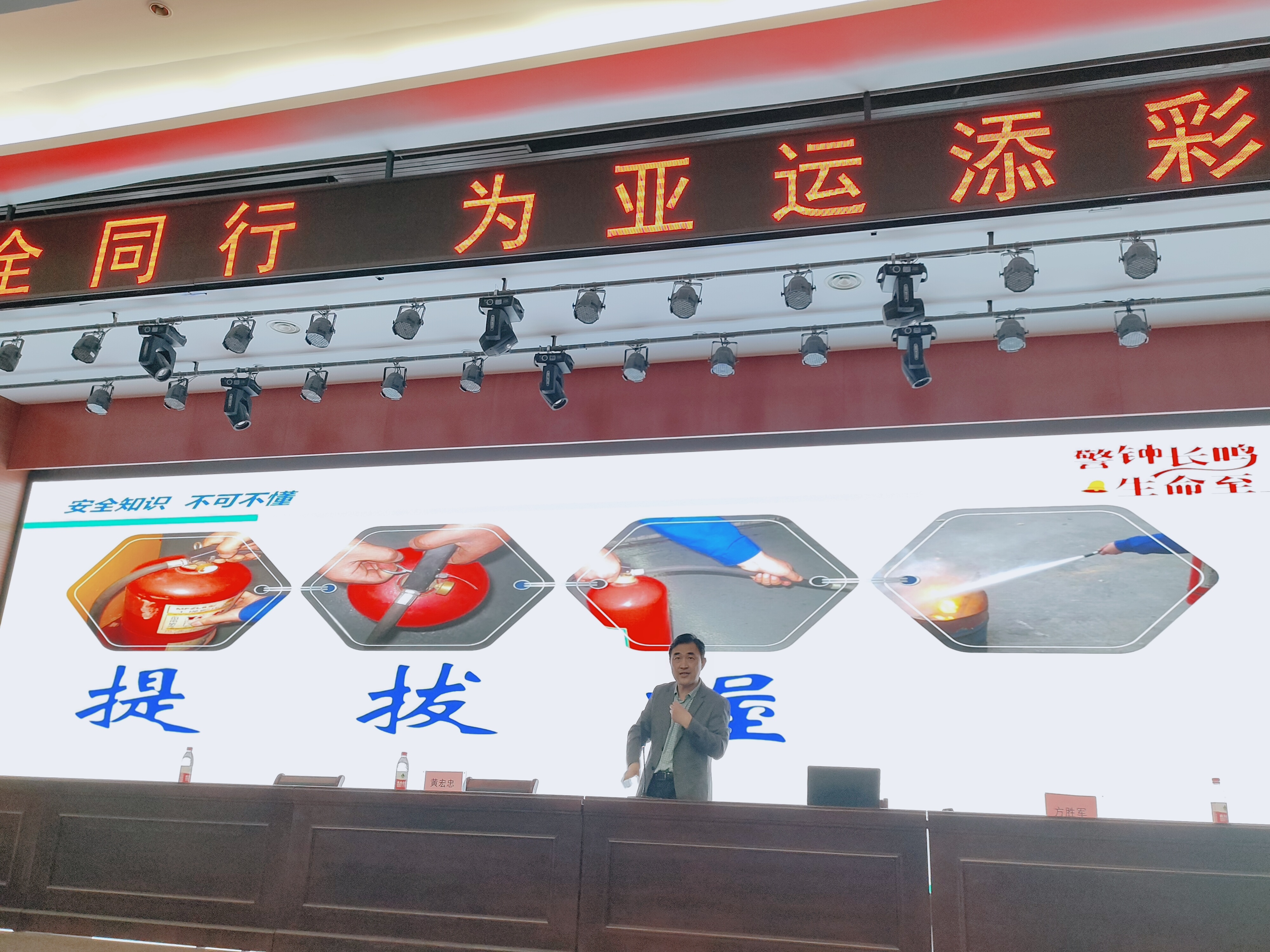 杭州亞運,富陽風采。為做好實習生安全教育工作,規范學生實習行為,保障學生生命安全,以及幫助更好地掌握科學的安全知識,2023年4月23日上午,在富陽區職教中心綜合報告廳組織開展了“與安全同行 為亞運添彩”為主題的安全教育活動。學校分管實訓工作副校長黃宏忠、實訓處主任徐柯明、實訓處成員、實習班主任以及全體2020級全體實習生參加大會。